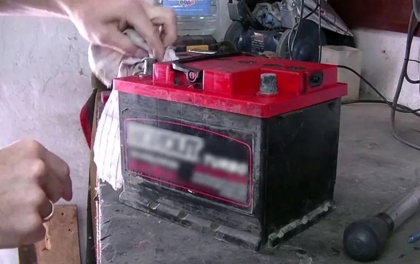 - Визуальный контроль. Проверьте состояние АКБ на присутствие на ней повреждений, уберите загрязнения накопившиеся вокруг неё, не должно быть никаких окислившихся элементов, все контакты должны быть прикручены.