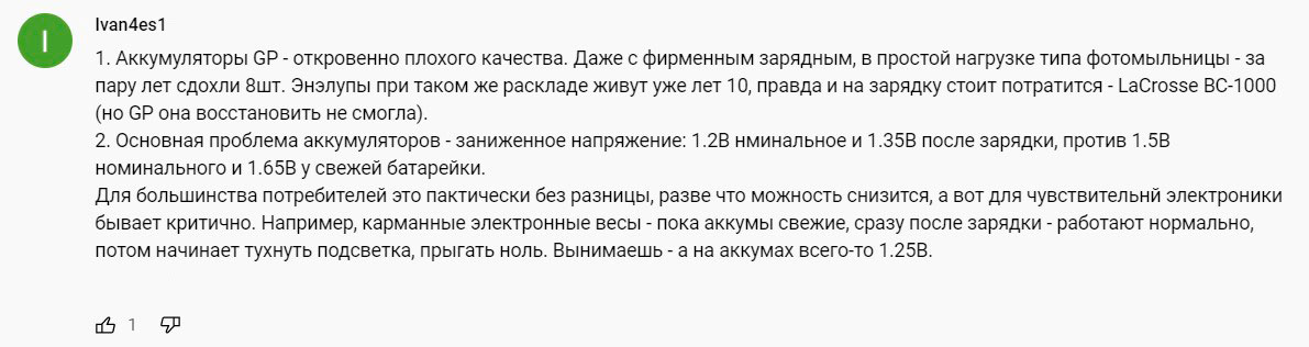 - Долговечность, батарея очень медленно теряет свою ёмкость. На длительном промежутке времени это очень заметно.