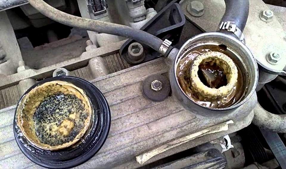 Масло обычно быстро обнаруживается, когда проникает в контур охлаждения. Надо открыть бачок и выявить следы автола. Как правило, смазка попадает внутрь из‐за двух основных неисправностей. Нарушения герметичности между ГБЦ и блоком, а также по причине потери герметичности в маслоохладителе.