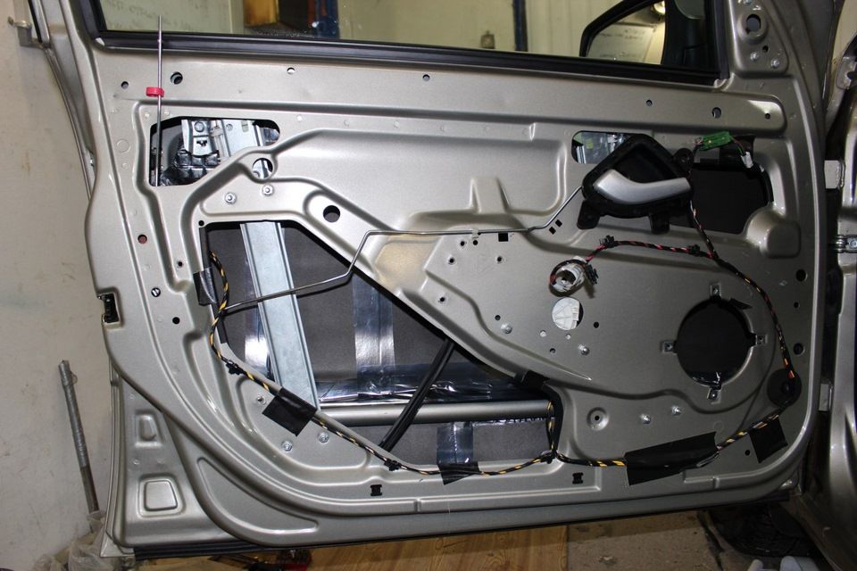 так выглядит дверь автомобиля со снятой обшивкой