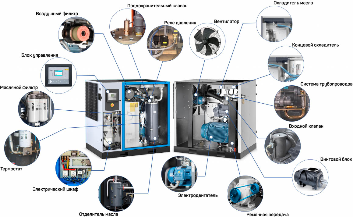 Перед тем, как залить в компрессор новое масло, необходимо слить старое, очистить от его остатков пневматические и масляные шланги, охладители, сепараторы, клапаны, поменять фильтры.