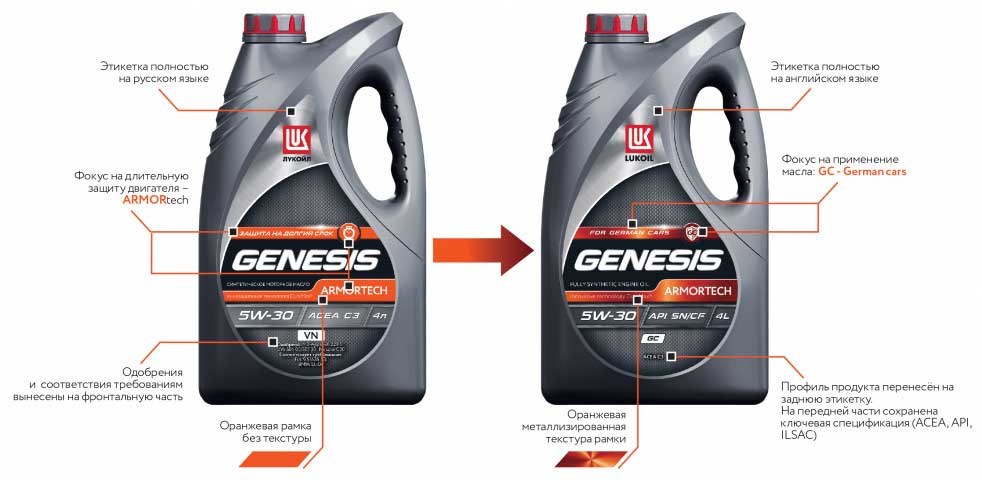 Помимо этого, в новой линейке моторных масел Лукойл Генезис на лицевой стороне все надписи идут только на английском языке.