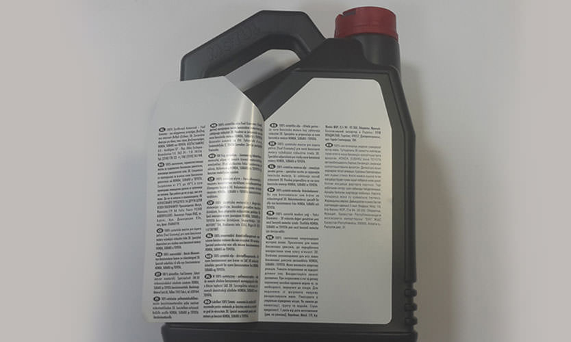 На канистры нанесены наклейки, в оригинальном масле они всегда приклеены ровно и прочно. На обороте этикетка открывается как книжка, внутри инструкция на нескольких языках, обязательно есть надписи на русском.