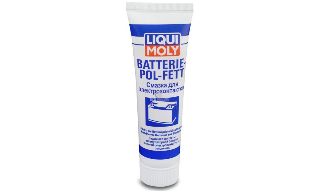 Liqui Moly Batterie-Pol-Fett— средство с основой из технического вазелина. Рабочая дельта температур -400C-+600C. Справляется даже с защитой пластика от агрессивного действия кислот. Дает красное окрашивание клемм.