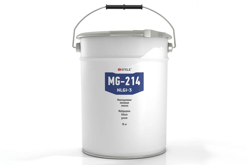 EFELE MG-214 – литиевая пластичная смазка третьего класса консистенции, универсального применения. По характеристикам имеет аналогичные Литолу показатели. Отличается повышенной температурой каплепадения (220 °С) и ненамного большей коллоидной стабильностью. Ее основное преимущество перед отечественным составом – это устойчивость к вымыванию соленой водой, поэтому MG-214 в основном заменяет Litol-24 в судостроении.