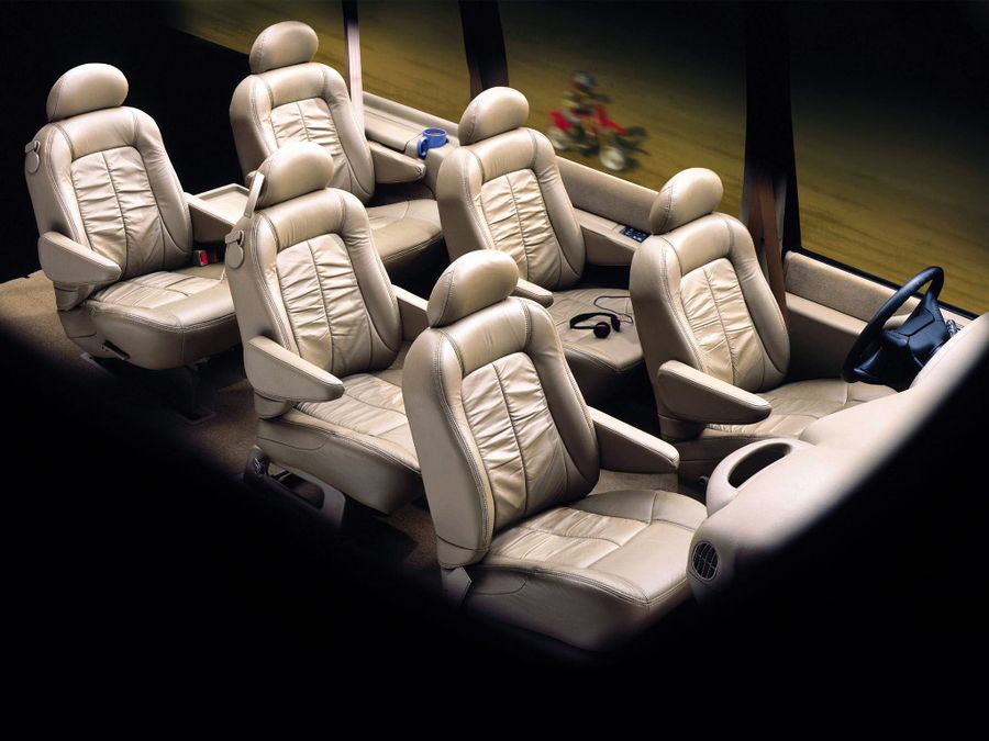 Теперь можно устроиться поудобнее (любое кресло в трех рядах — с высокой спинкой, регулируемой по наклону), откинуть столик, поправить прическу у зеркала с подсветкой, включить магнитолу, наполнив “комнату на колесах” стереозвуком…