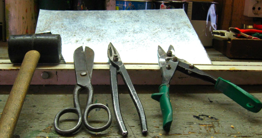 При самостоятельном изготовлении дефлектора ЦАГИ понадобятся: киянка, дрель, тиски и ножницы по металлу