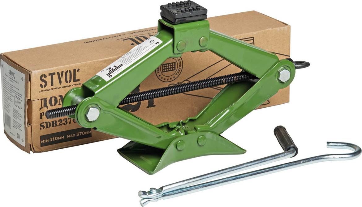 Полноценный «китаец» со всеми вытекающими из этого последствиями. На удивление одна из самых удачных моделей серии, которая также не лишена недостатков, но в куда меньшей степени. Впрочем, все они касаются больше эргономики, нежели технических моментов. При приложении нагрузки винтовой (ромбический) домкрат может увести в сторону, поэтому установку следует производить аккуратно. Не впечатляет и рукоятка, больше напоминающая кардан, нежели вразумительный механизм для подъёма основания домкрата.