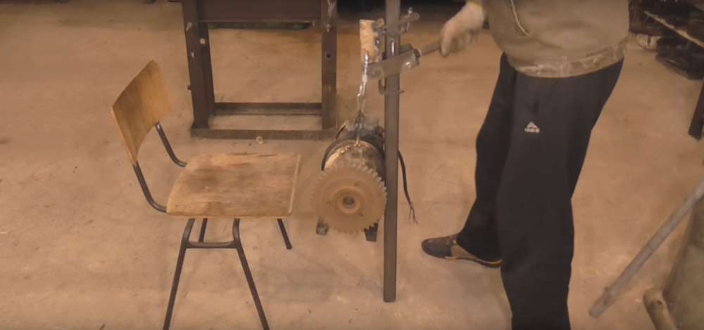 Вверху сверлите отверстие и ввариваете туда гайку. Внизу также необходимо просверлить отверстие. После этого вставляете туда спираль для вращения.