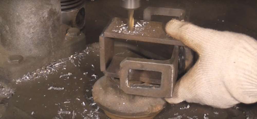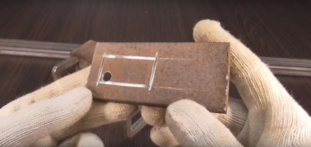 Начнем с того, что в боковых стенках швеллера проделываем отверстия под свободный ход профильной трубы 20х40 мм. Основное отверстие можно сделать сверлением дрелью, а доработать его до нужной формы напильником. У кого есть аргон, тому повезло больше всех)))