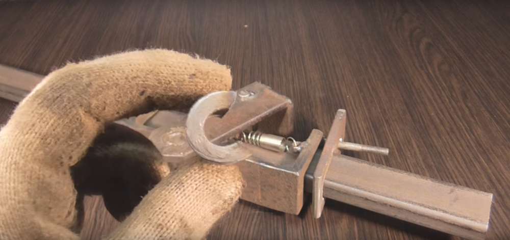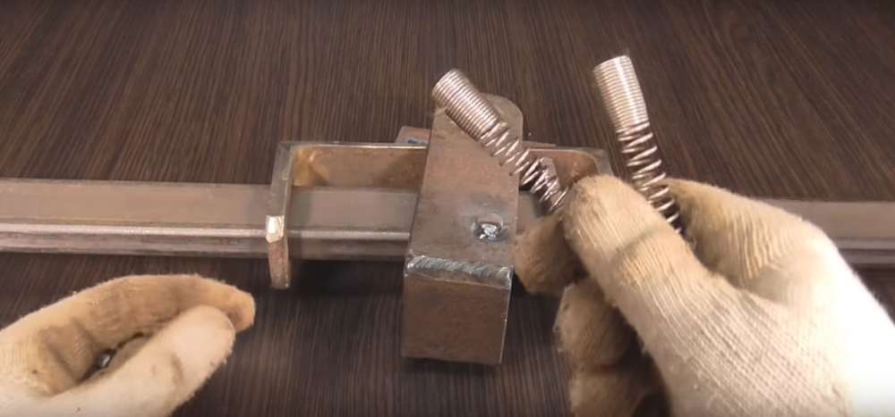 - К одному концу винта приваривается кусок швеллера, образуя ложе