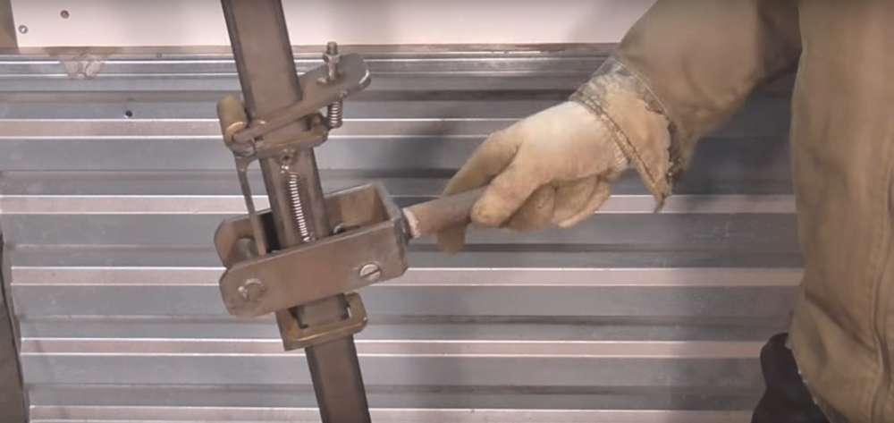 К нижней части домкрата необходимо приварить конструкцию в виде буквы П. Упор домкрата, который снимается, должен передвигаться по направляющим, а также передавать давление на деталь, которая обрабатывается.