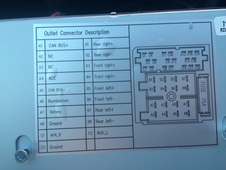 Обжав пинами витую пару подключаем один пин в 20 разъем это будет CAN+, второй в 21 разъем это CAN-, ответные концы витухи я обжал двумя пинами извлеченными из раъема QUADLOCK, т.к. использовать его я не буду. Подключить к разъему ISO их необходимов соответствии с наклейкой на ГУ — CAN+ — А1, CAN- — А5. Также необходимо извлечь пин с кабелем из А6, т.к. он отвечает за подсветку ГУ когда она не подключена к BCM и в моем случае не понадобится. Для того, чтобы ГУ не отключалась по прошествии 10 минут необходимо впаять в кабель идущий к разъему А4 диод (1N5822), теперь отключаться она будет при извлечении ключа из замка зажигания. Колодка с контактами А — черного цвета, с контактами В — коричневого. При проверке баланса переднних и задних динамиков выяснилось что правая пара динамиков перепутана местами, т.е. передний правый динамик регулируется задним и наоборот. Устраняется это очень просто — необходимо в колодке коричневого цвета поменять местами пары контактов переднего и заднего динамика (см. наклейку) В3 с В1 и В2 с В4.
