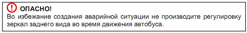 Автобус оснащен салонным зеркалом, установленным на каркасе крыши в непосредственной близости с маршрутоуказателем. Регулировки зеркала аналогичны регулировкам наружных зеркал.