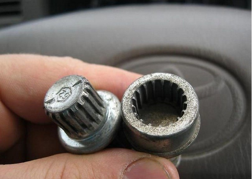 СОВЕТ.Если у автовладельца есть на примете виртуозный токарь, можно заказать ему изготовление нового ключа по слепку с головки секретного болта.