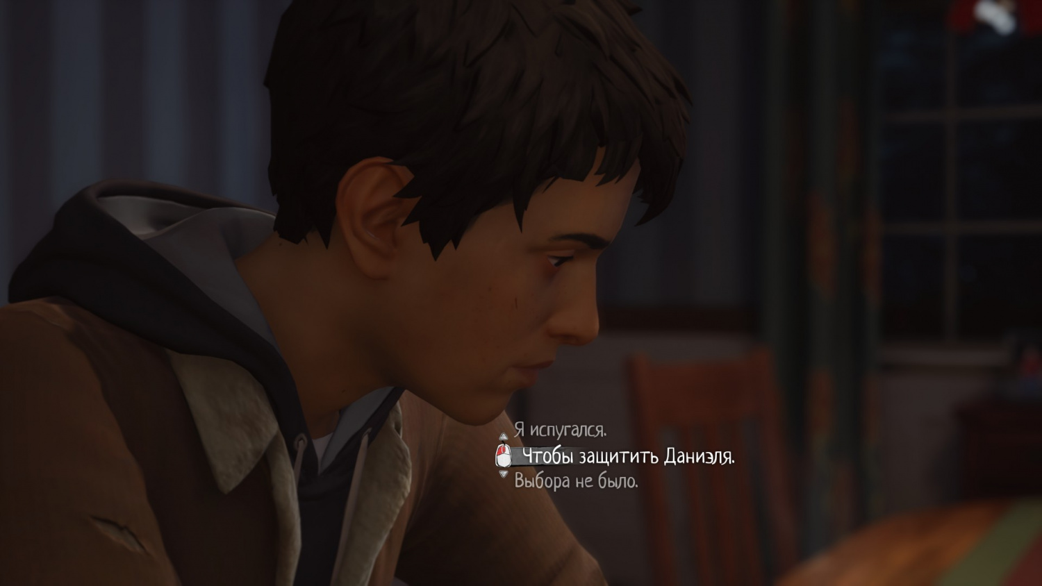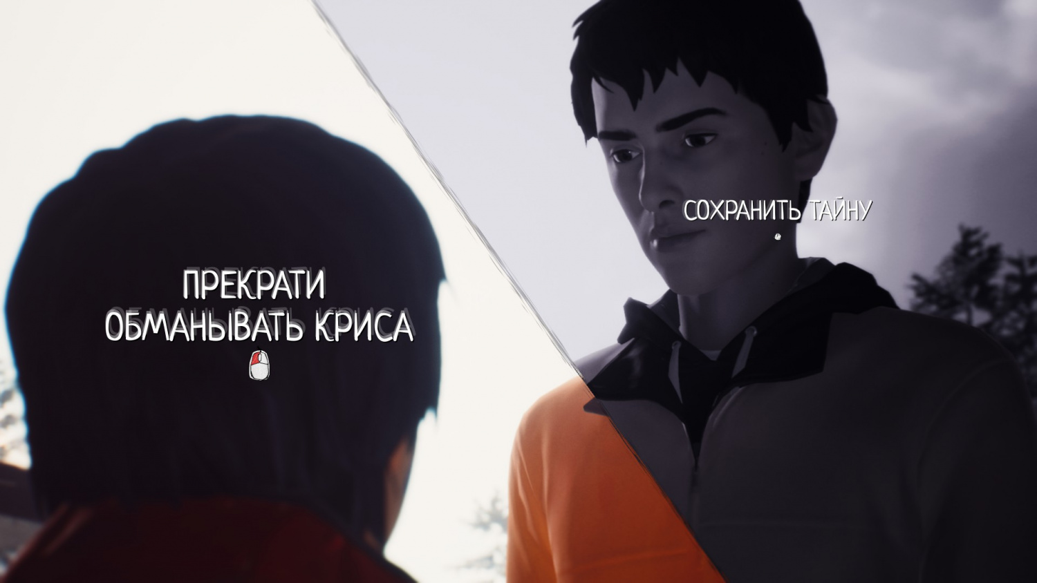 - Просим сказать правду Крису. Если Даниэль расскажет ему (при хороших отношениях с Шоном), то в результате мальчик поможет нам сбежать и не попадет под колеса полицейской машины. Также Крис отдаст свой красный плащ брату на память. Если же Даниэль не послушает нас и продолжит лгать Крису, то в результате он будет винить себя за то, что его друг попал под машину.