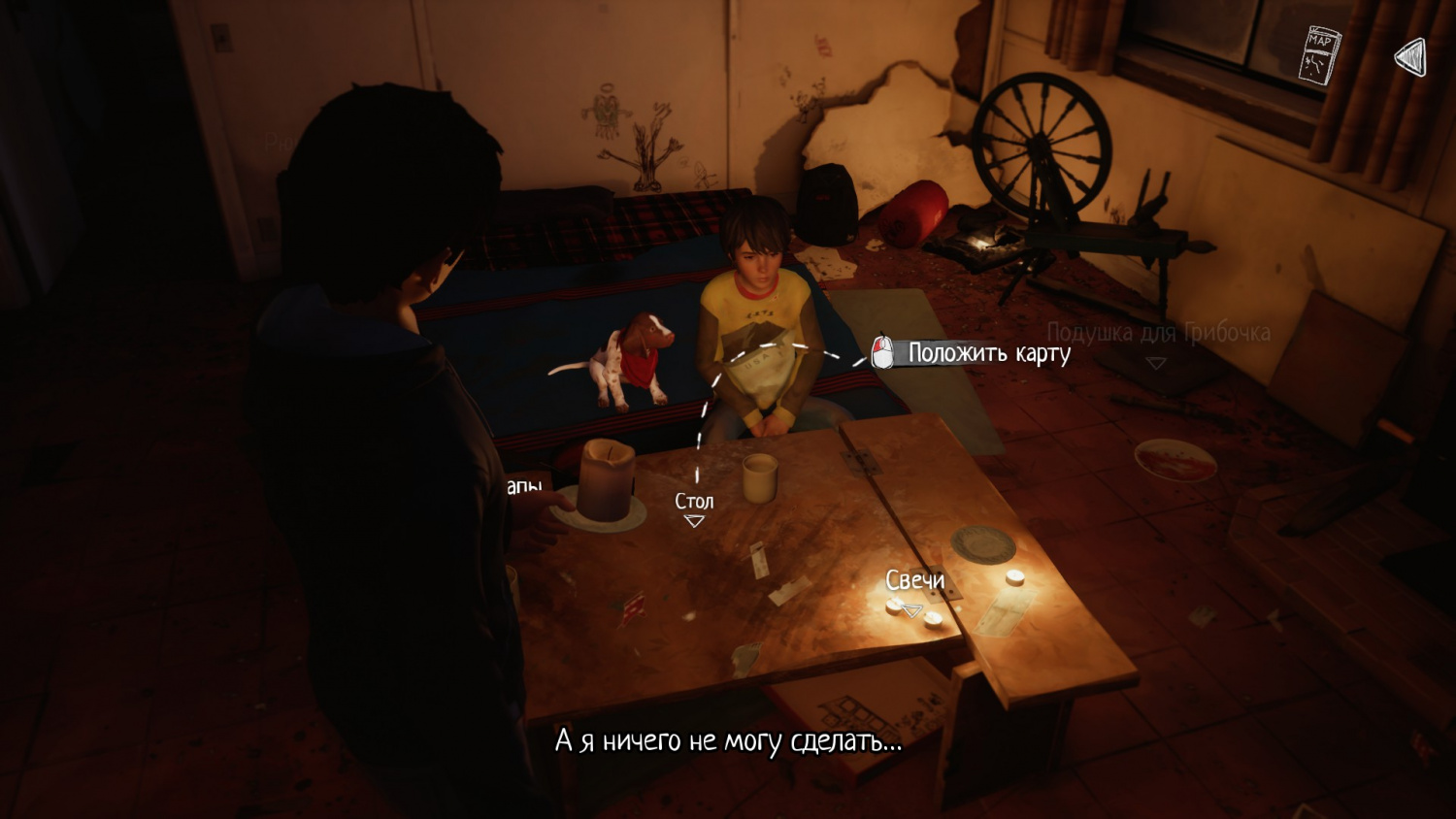 Возвращаемся в комнату и раскладываем карту на столе.
