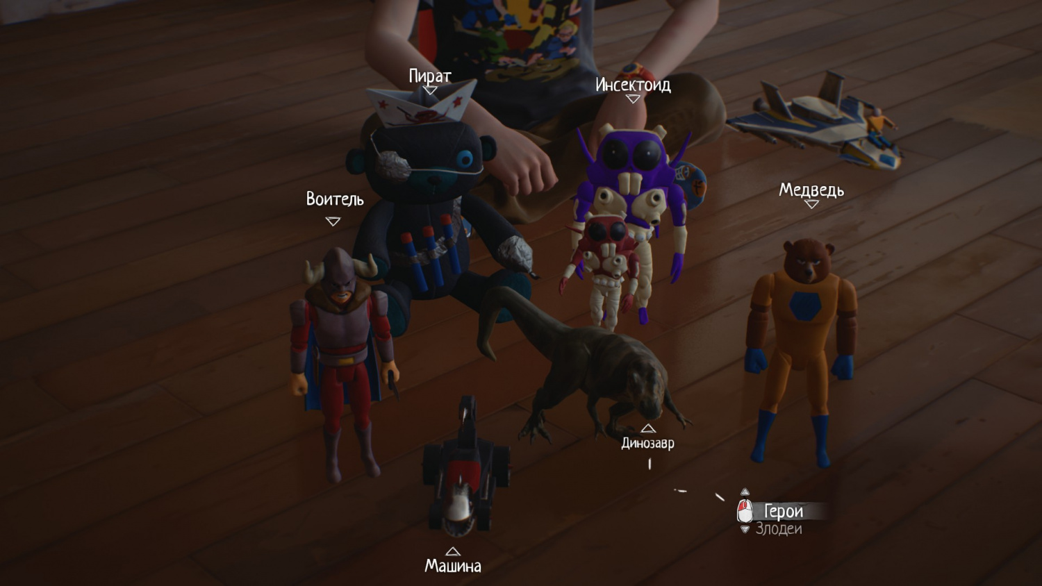 - Герои – пират, динозавр, медведь и воитель.