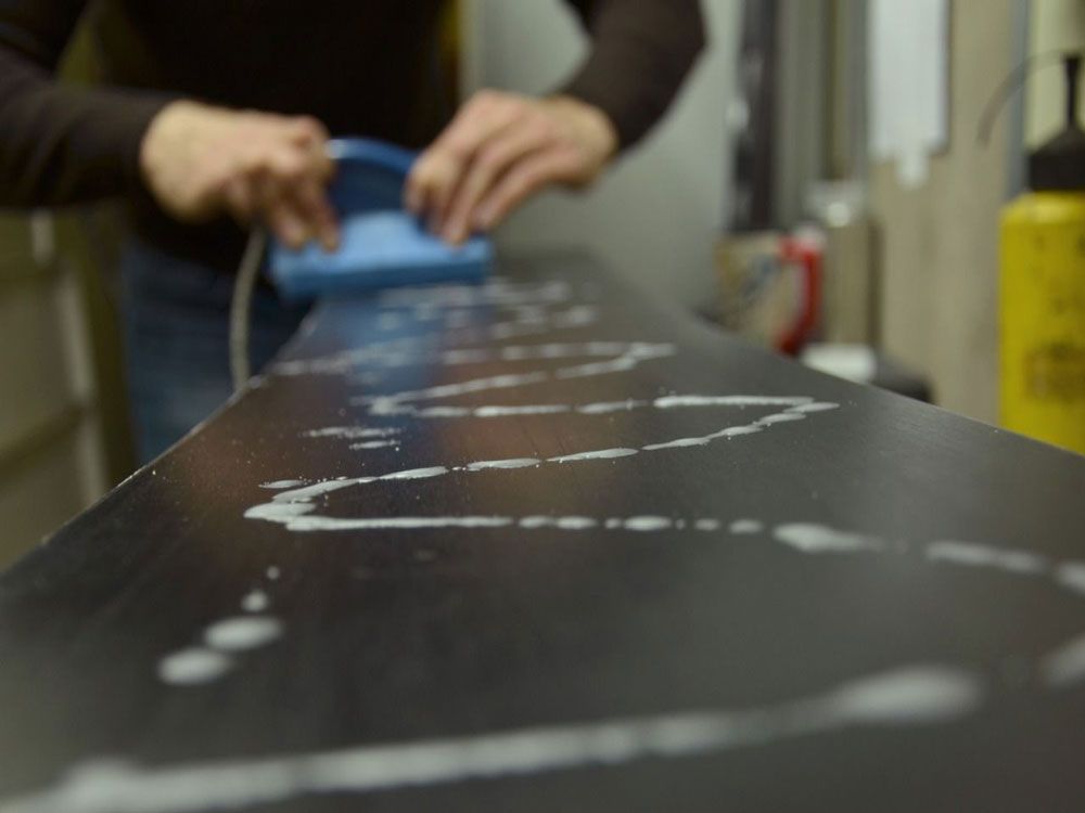 Вооружайтесь щётками и начинайте полировать поверхность сноуборда. Для начала — 10 заходов бронзовой щёткой, а потом столько же нейлоновой. Нажимать слишком сильно на них не стоит, чтобы не повредить, и продолжать до появления блеска.