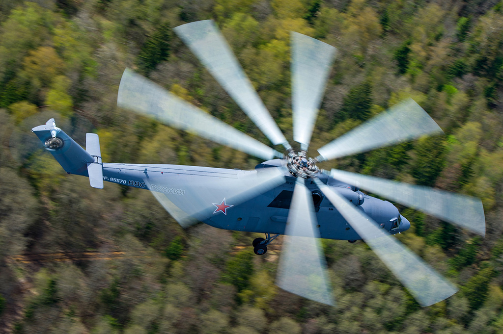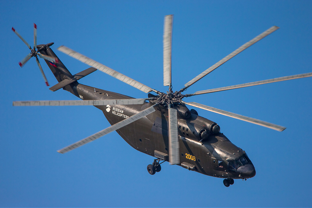 Самым большим и грузоподъемным вертолетом в мире до сих пор остается впервые взлетевший в 1968 году Ми-12. Размах его крыла составляет 37 метров. На каждой мотогондоле, размером практически с истребитель, размещен винт диаметром 35 метров. Машина создавалась как сверхтяжелый транспортный вертолет с грузоподъемностью не менее 30 тонн для перевозки компонентов межконтинентальных баллистических ракет и различной военной техники. При необходимости использования Ми-12 в гражданских целях в нем могли расположиться с комфортом 220 человек.