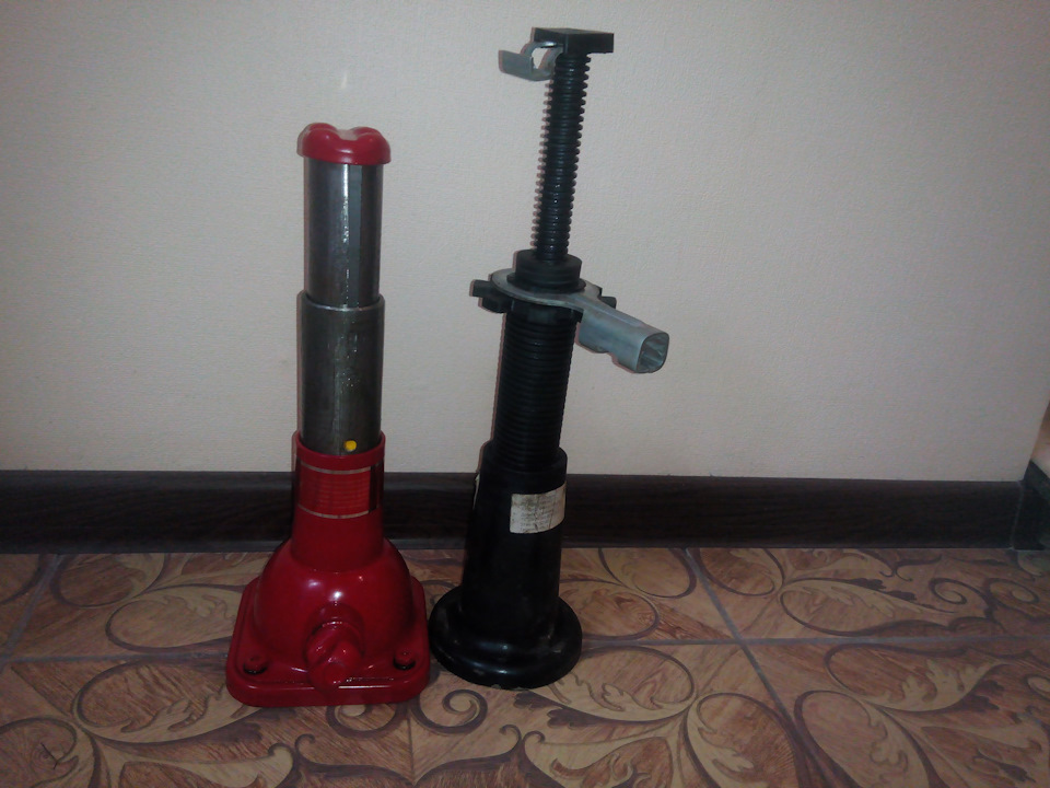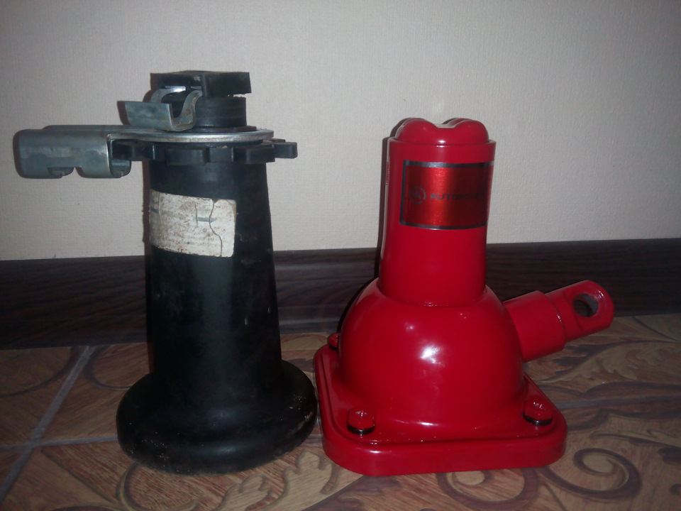И так, пора заменить штатный домкрат, на более надежный вариант.Тестировал я два домкрата от Автопрофи.Первый испытуемый это бутылочный двухштоковый механический 2 тонный домкрат.Для начала сравнение. По высоте Автопрофи ниже штатного на 10 мм. Его высота 150 мм. В этом его плюс, так как были жалобы, что штатный домкрат на спущенном 15 колесе не лезет под порог.