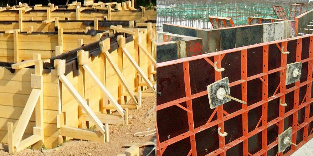 Соприкасающиеся с бетоном элементы выполняются из пиломатериалов, ДСП, фанеры и пластика. Сейчас все большую популярность набирает металлическая опалубка, которая дает превосходный результат – гладкую бетонную поверхность.