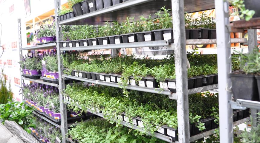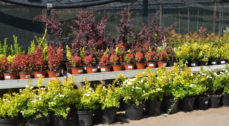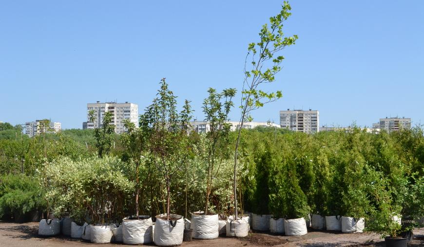 Саженцы с земляным комом в садовом центре