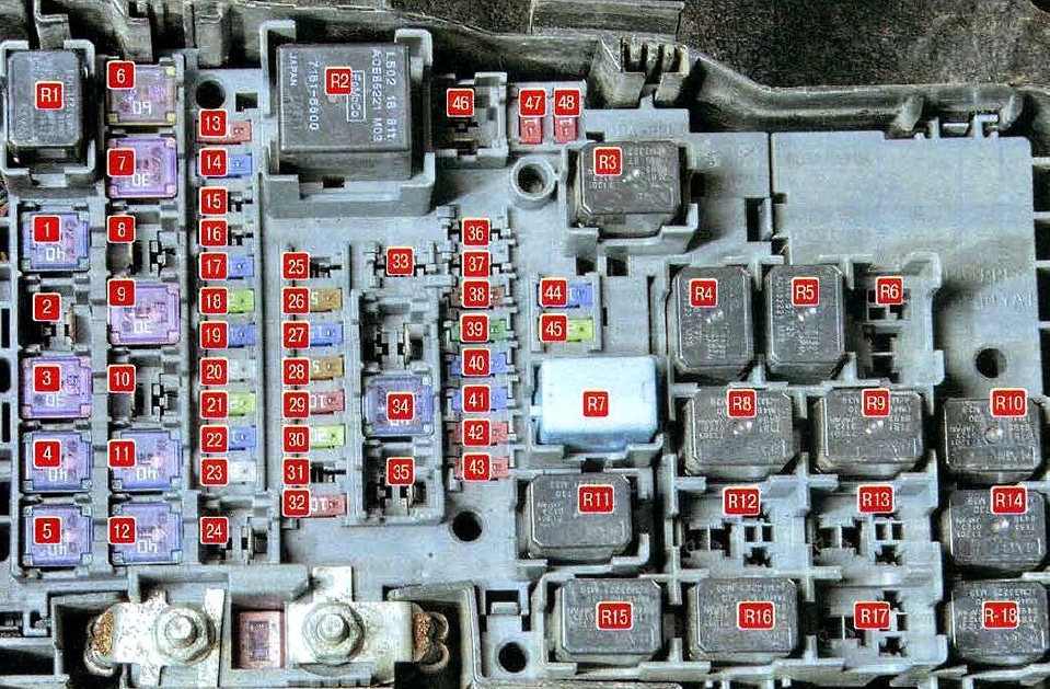 | R12 | FAN#2 RELAY – Реле высоких оборотов вентилятора системы охлаждения двигателя |