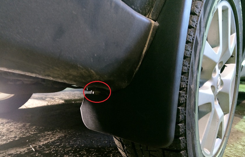 6. Головкой на 10 мм выверните болт крепления брызговика к кузову.