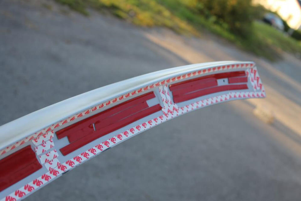 - наклеить двусторонний скотч по периметру спойлера.