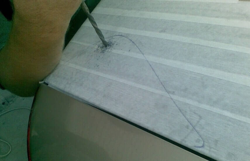 - Проделать отверстия в отмеченных местах.