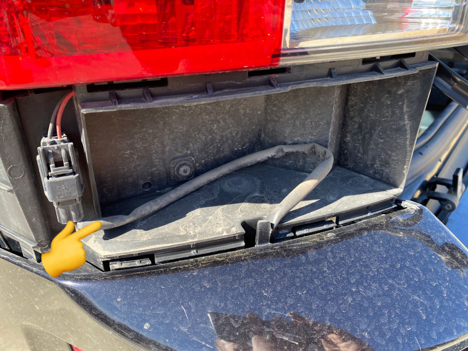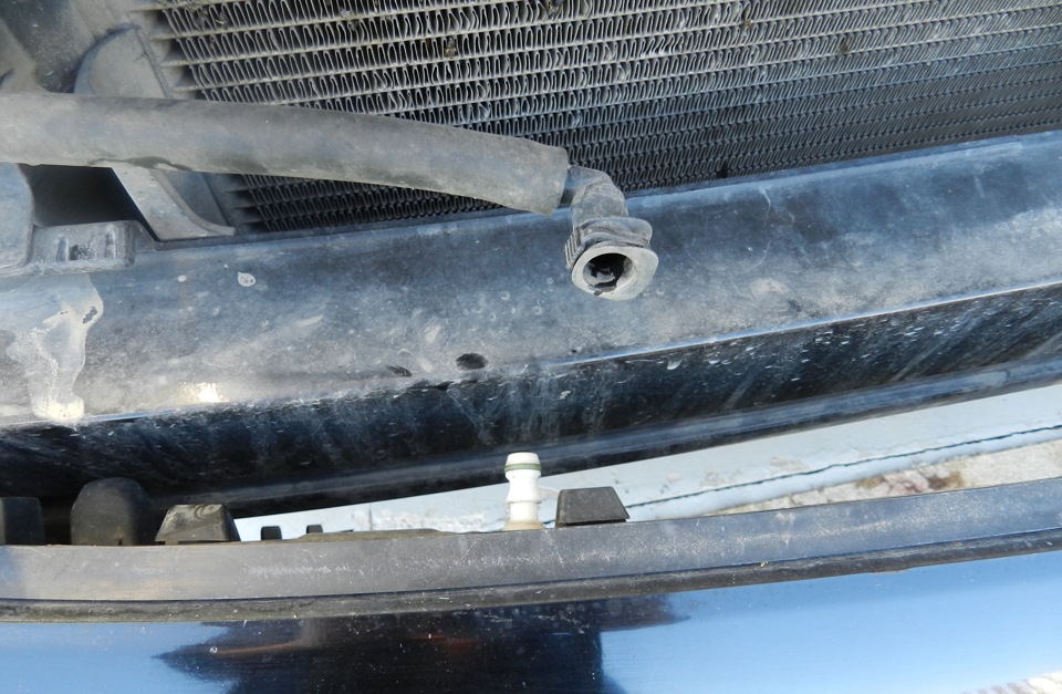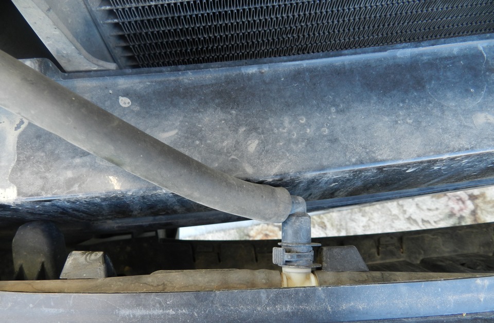 Ну вот и все. Теперь хватаемся за бампер двумя руками и тянем на себя, как только увидите шланг подачи воды на омыватель остановитесь и снимите его.