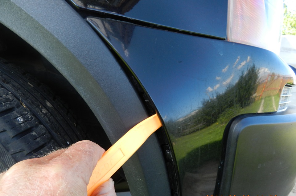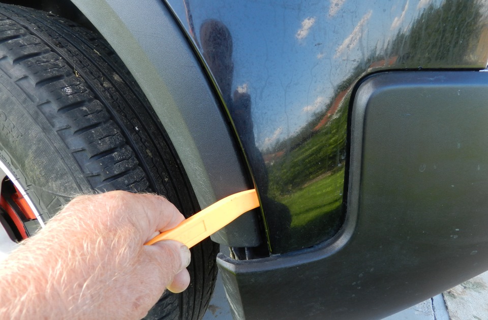 Теперь нужно убрать накладку или расширитель крыла. Необходимо вывести только 3 защелки.