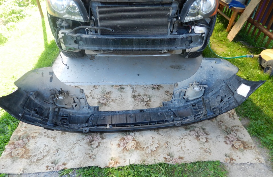 Бампер на этой машине состоит из нескольких частей. Если следовать методично то замена необходимых деталей за бампером и ремонт его самого — не вызовет трудностей.