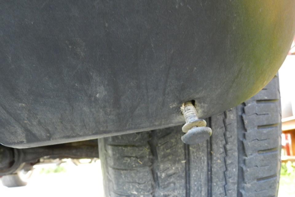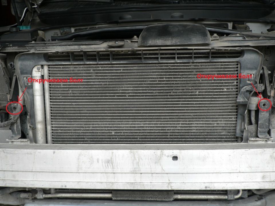 Необходимо опуститься вниз под бампер (как указано на схеме) и снять фиксирующий болт. С каждой стороны по одному.