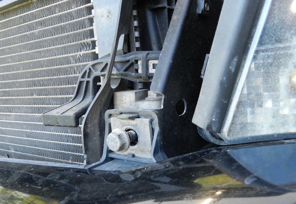 Осторожно снимаем передний бампер сначала отстегнув края. Если он не оторвался, вы почти наверняка забыли винт или зажим