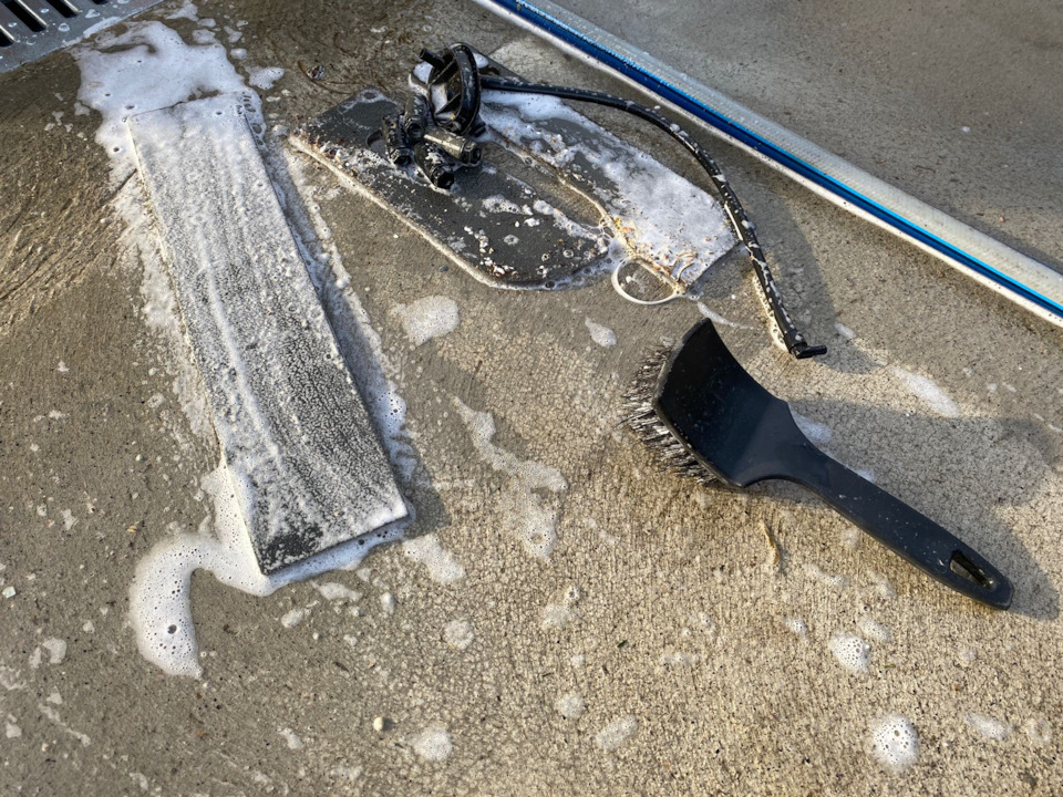 Это же средство использую для очистки снятых деталейВремени на мойку и сушку с использованием солнышка и фена ушло чуть более 2-х часов