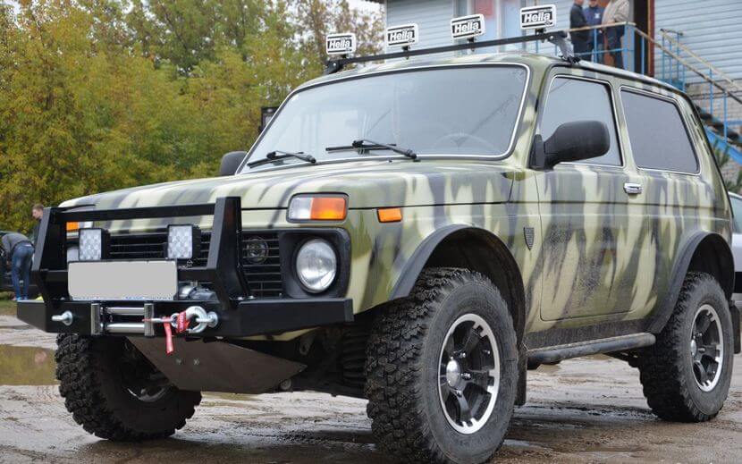 Предварительно определяем размеры обвеса. Для его изготовления потребуется купить круглые трубы и швеллера, лист металла (толщина 2 мм). Тюнинг начинается с разборки передней части автомобиля «Нива» 2121. Рекомендуется снять заводской бампер и накладки, расположенные в месте установки будущей конструкции.